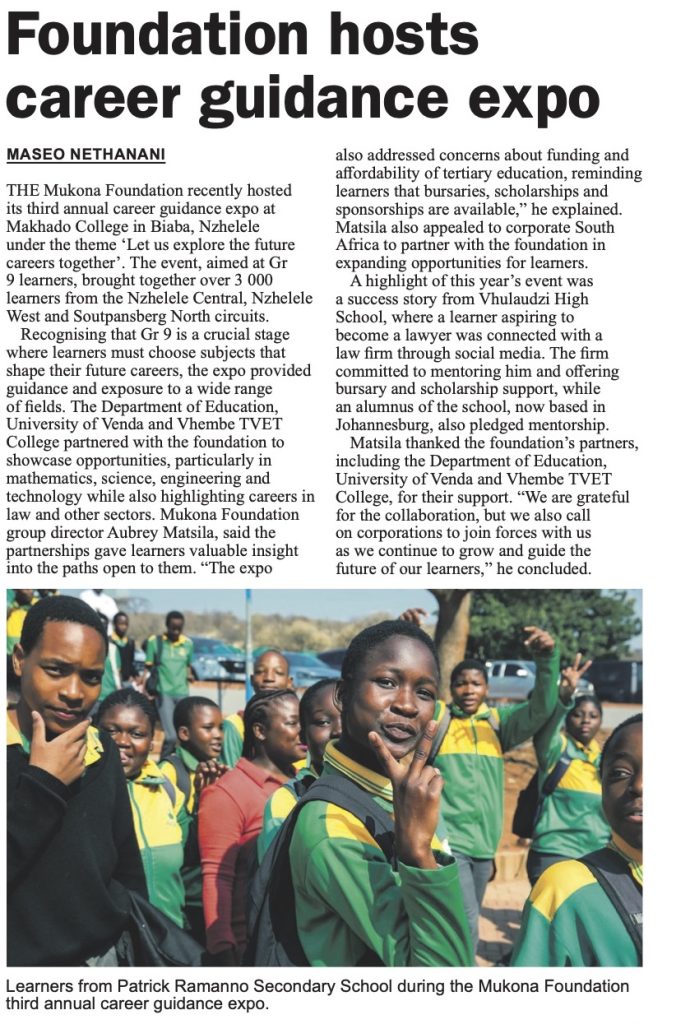 Career Expo at the University of Venda: Empowering Learners withKnowledge and Opportunity